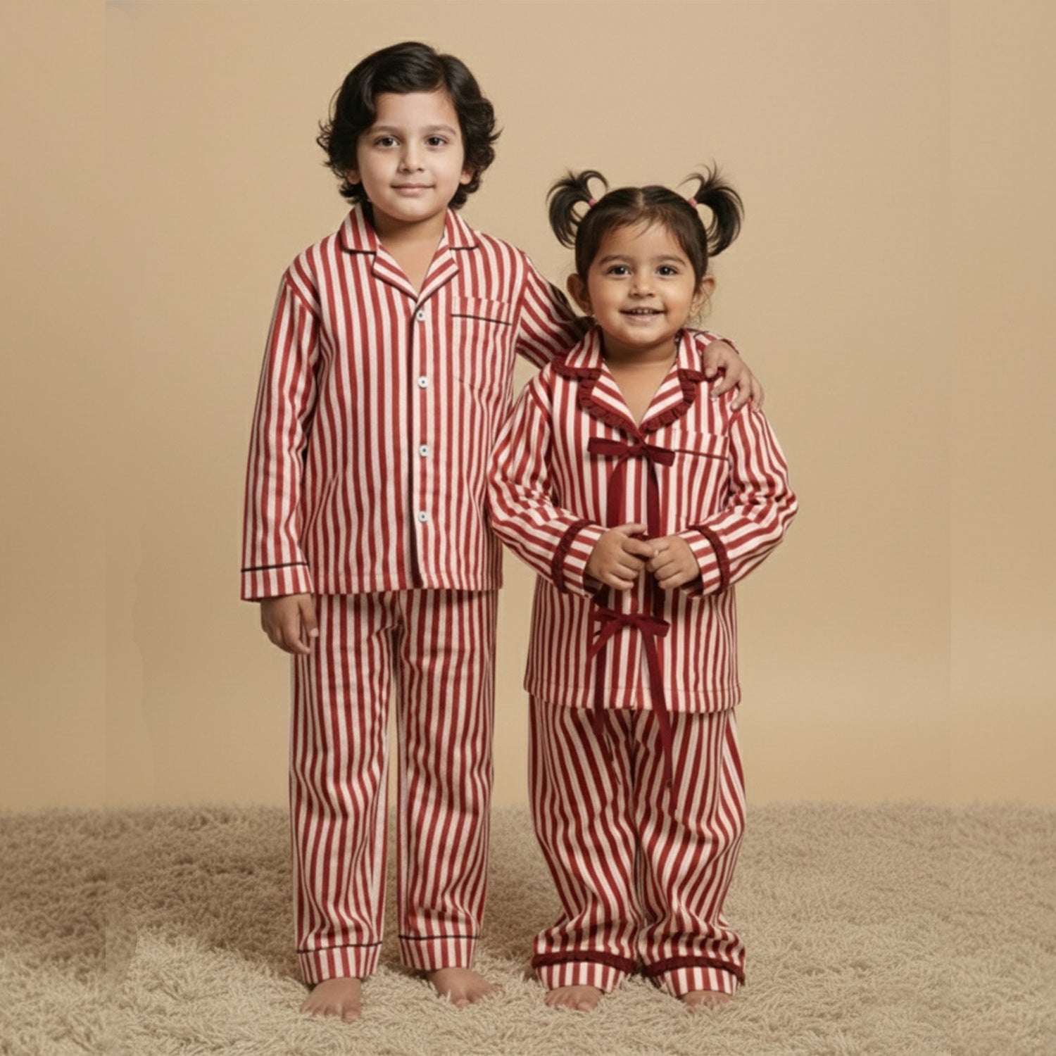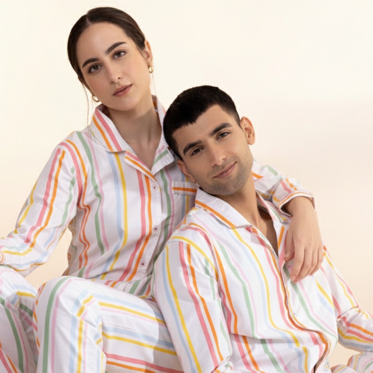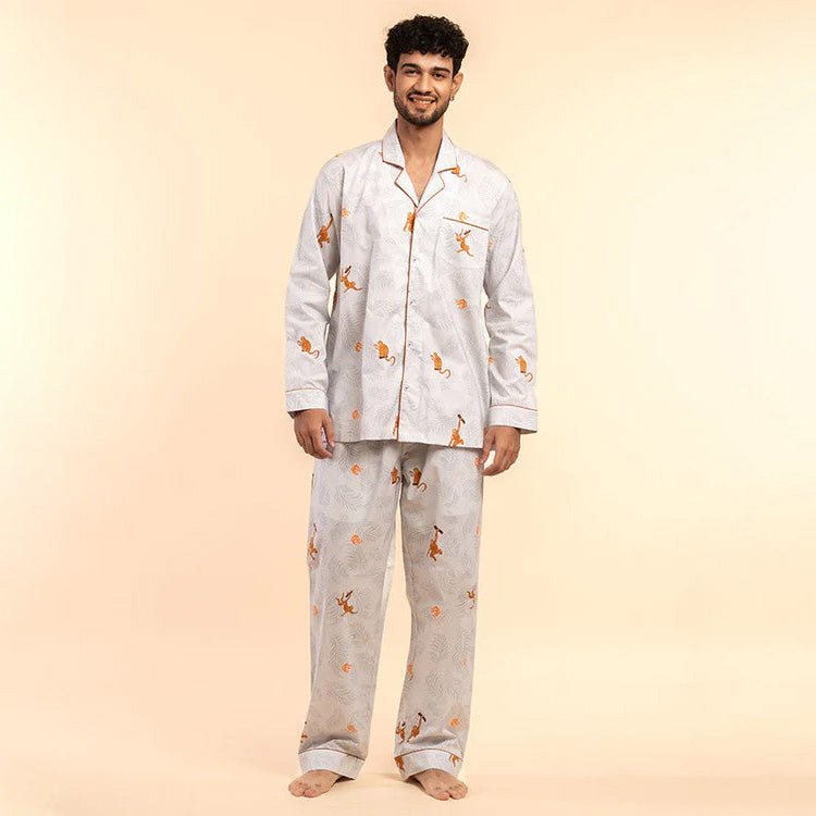 Men's Embroidered Cotton Notch Collar Pyjama Set