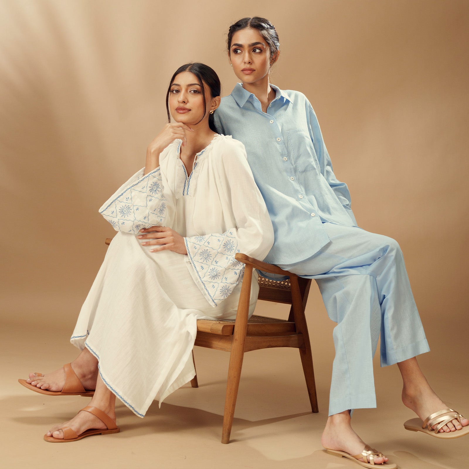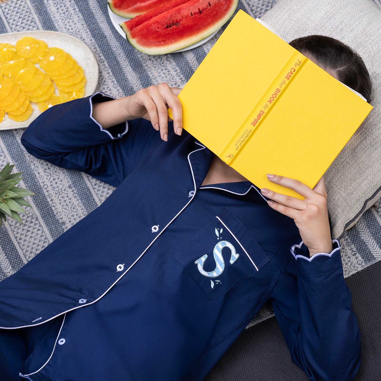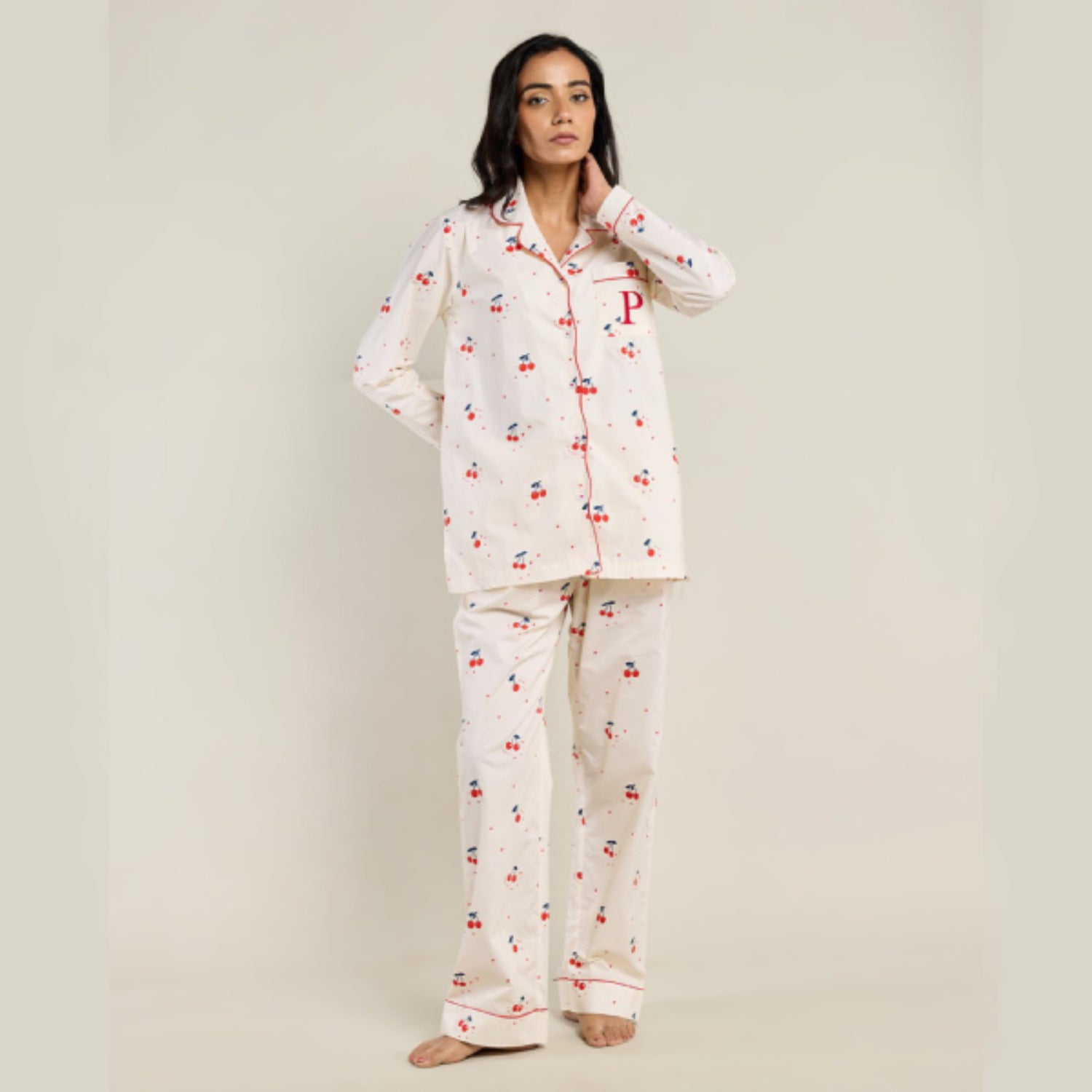 Women’s Embroidered Cotton Notch Collar Pajama Set