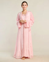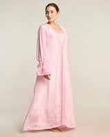 The Satin Cover up — fluid, refined, and effortlessly elegant. Designed with a flattering V-neckline and open front, its long, flowing silhouette adds sophistication to any look. It layers beautifully over lingerie, swimwear, or nightwear for an elevated finish.