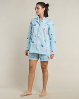 The notched collar adds a touch of tailored charm to the top, while the coordinating shorts ensure comfort without sacrificing style.