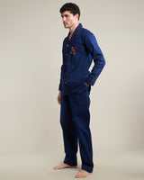 Silent Navy Cotton Notched Collar Pyjama Set - Men