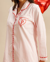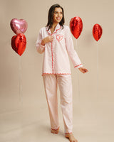 Tickled Pink Embroidered Notched Collar Pyjama Set - Women