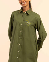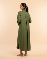 Description: A relaxed Wild Moss shirt dress that pairs timeless structure with modern silhouette.